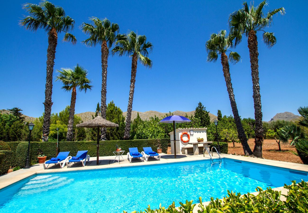 Villa Almondoi is a typical Mallorcan country house near Pollensa, with stunning views over the surrounding landscape to the mountain peaks that protrude between the trees.