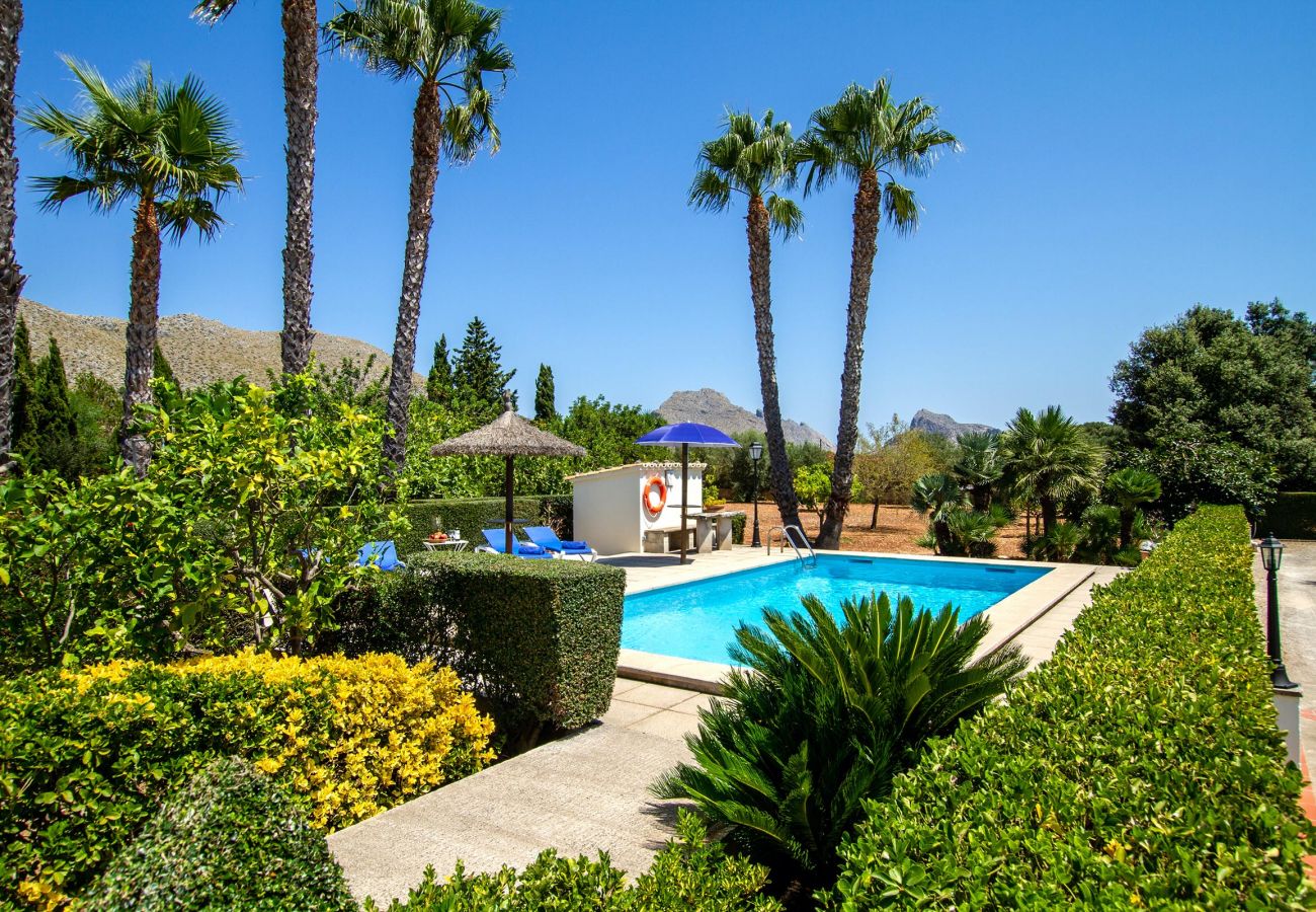 The gardens at Villa Coster del Puig are very well cared for with lawns and mature shrubs and trees. The pool itself is surrounded on three sides by lawn, and a stone sun terrace with comfortable sun loungers runs along the other side. This is a lovely villa in a wonderful location and yet is just a short walk from Pollensa and its cafes, bars, restaurants and shops. Lovely beaches are also a short drive away.