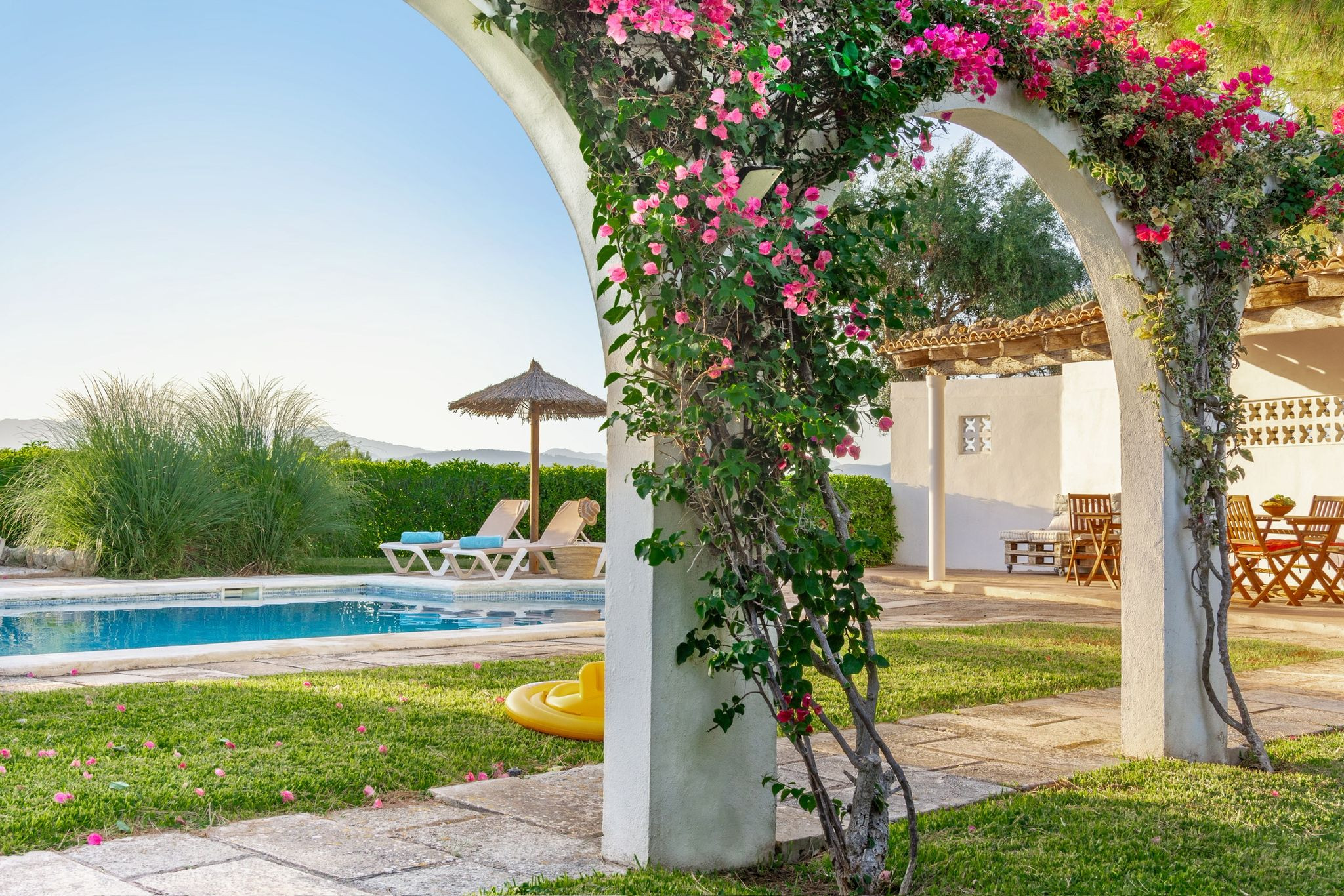 Here you can enjoy authentic Mallorca in a peaceful and family-friendly environment. 10 km away are the coast and beaches of Can Picafort and Playa de Muro. On Tuesdays and Saturdays, the weekly market is held in the town square of Santa Margalida. In Can Picafort, you will find restaurants, supermarkets, petrol stations, as well as a seafront promenade with bars and shops.