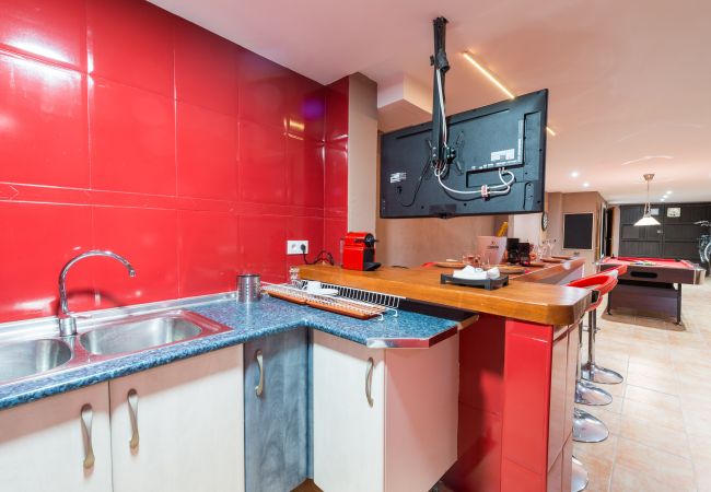 This charming village house, located in the medieval centre of Alcudia, has three bedrooms, three bathrooms, a living room and kitchen distributed across several floors, and a roof terrace with views of the town, but what really makes this house special is the games room on the ground floor with a billiards table, darts, bar, kitchen, sofas and space to store bicycles, perfect for enjoying with family and friends!