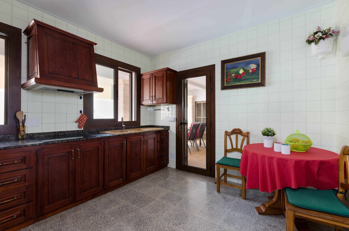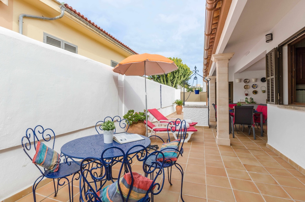What about starting your day with a large breakfast on the terrace, enjoying the first sunlight? Afterwards, you may go to the beach, which is 300 meters from the house. The fine grained sand beach counts with lots of services and a nice sea promenade. Supermarkets, bars, shops and the bus station are nearby. The beaches of Capellanes and Playa de Muro are 1.5 km from the house. Both are wonderful natural beaches with some good beach bars. The area is nice for watersports like windsurf or paddle surf, especially in the morning. There are some good restaurants nearby, for example El Puerto, Mar y Paz and Es Mollet.