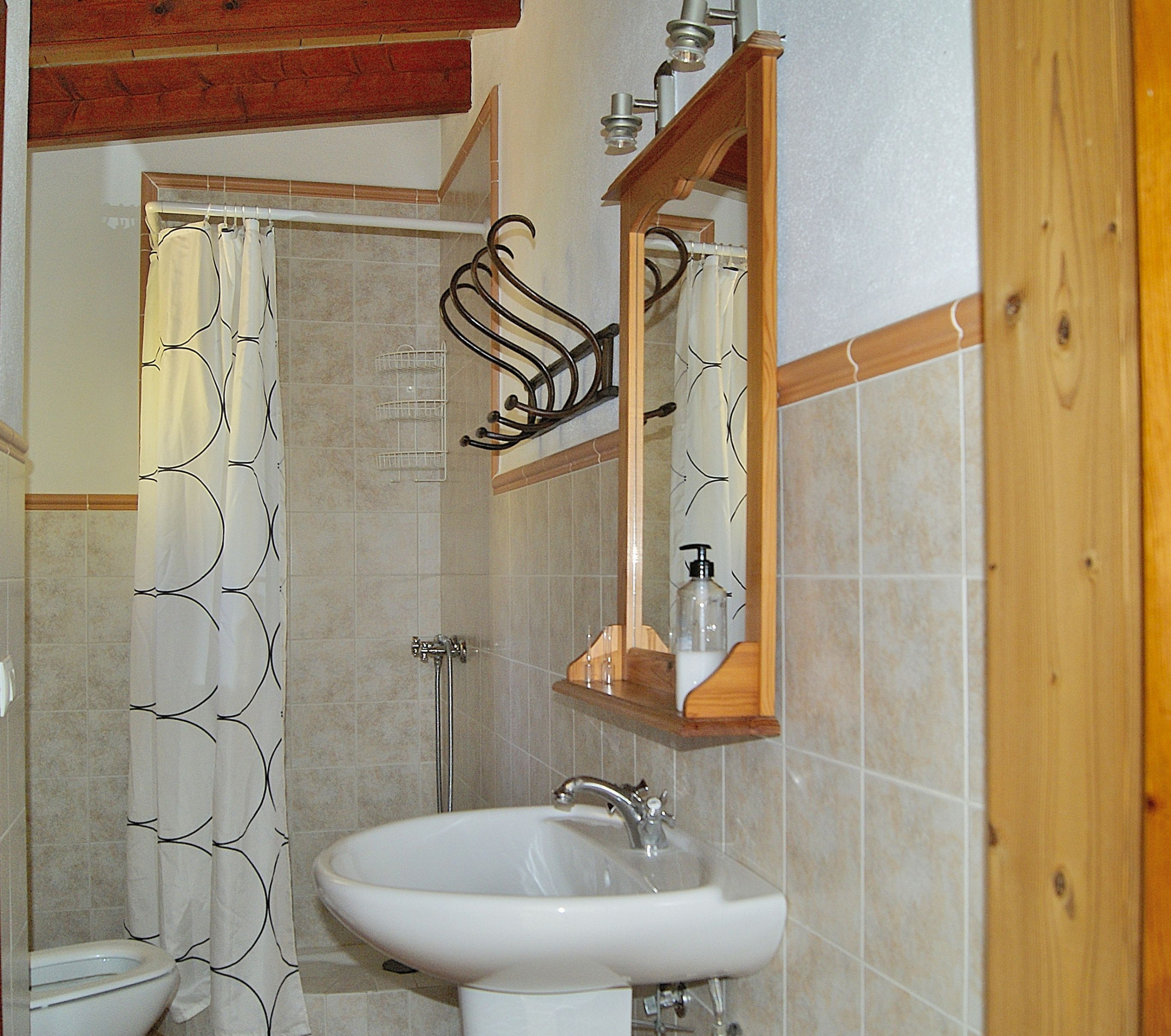 In the house there are three bathrooms, two with shower and the other with a bathtub.