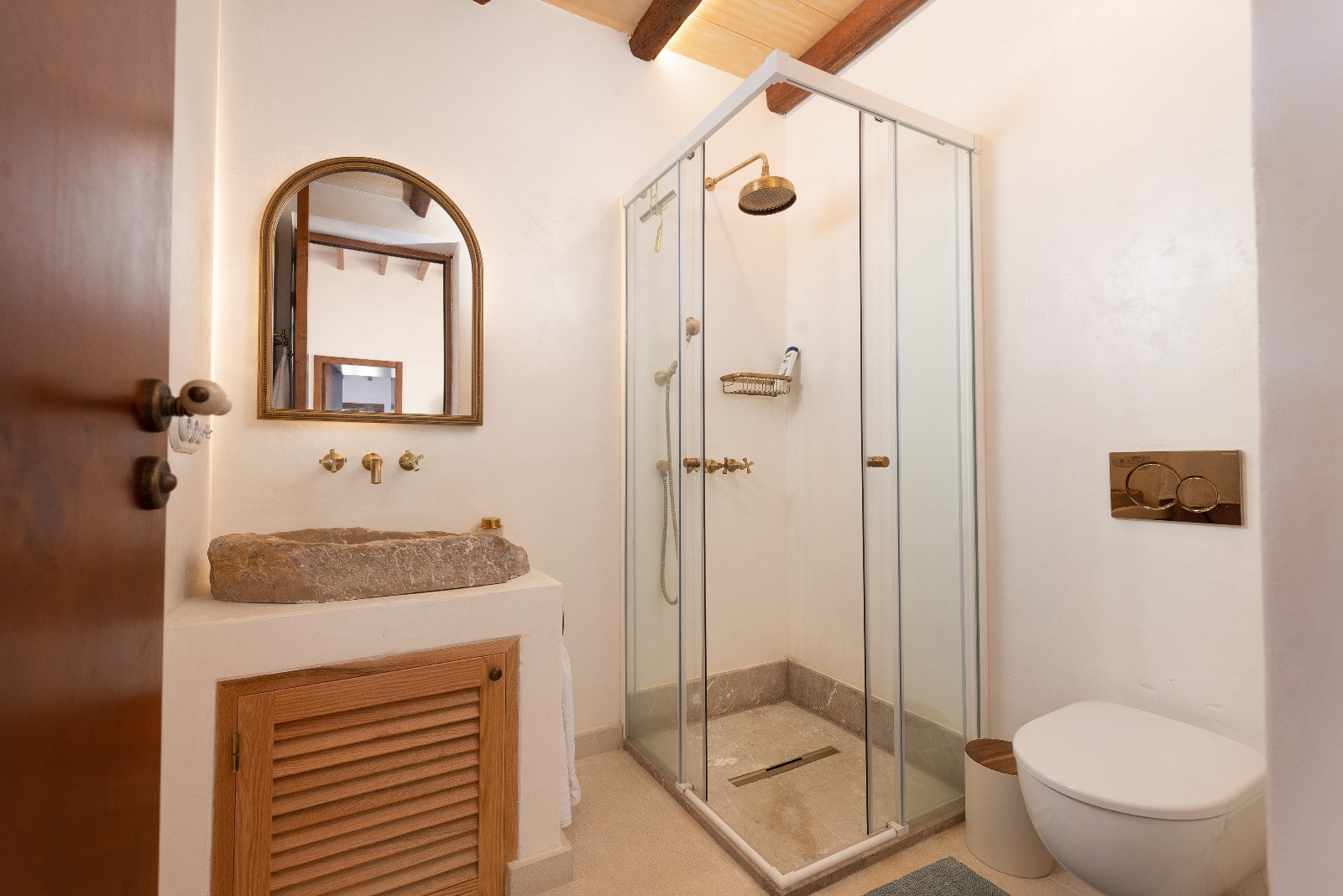 The layout of the house is very comfortable: on the ground floor there is a bedroom and a full bathroom. On the upper floor, the other four bedrooms and three additional bathrooms are located, one of them en suite, integrated into one of the bedrooms.