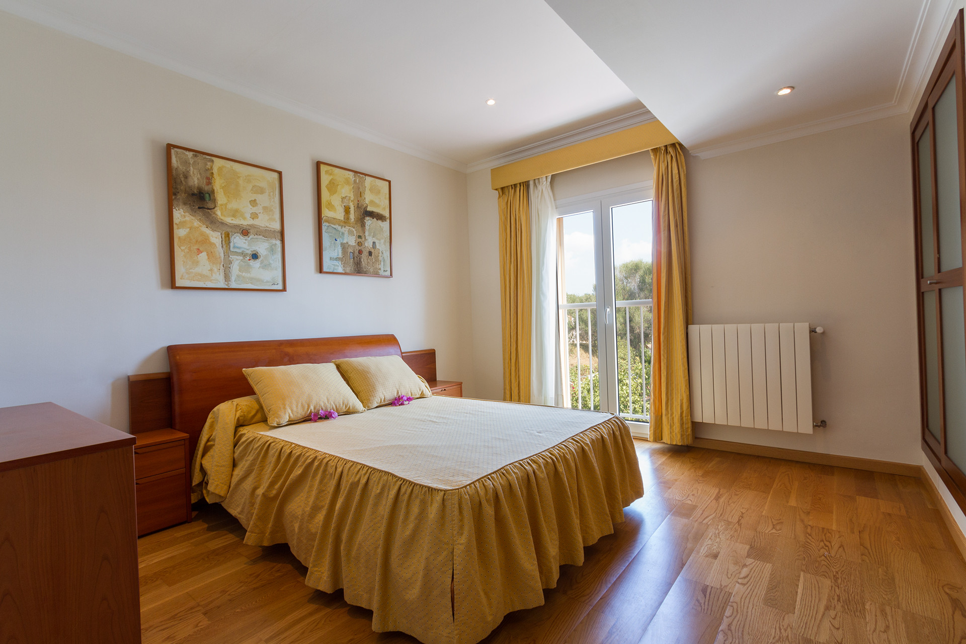 Villa Alzina has six bedrooms with capacity for up to 9 people, all equipped with heating. It has two bedrooms with double beds, two with two single beds each, and two bedrooms with single beds. The house has four bathrooms in total, one of them with a bathtub and another exterior, all with shower and toilet.