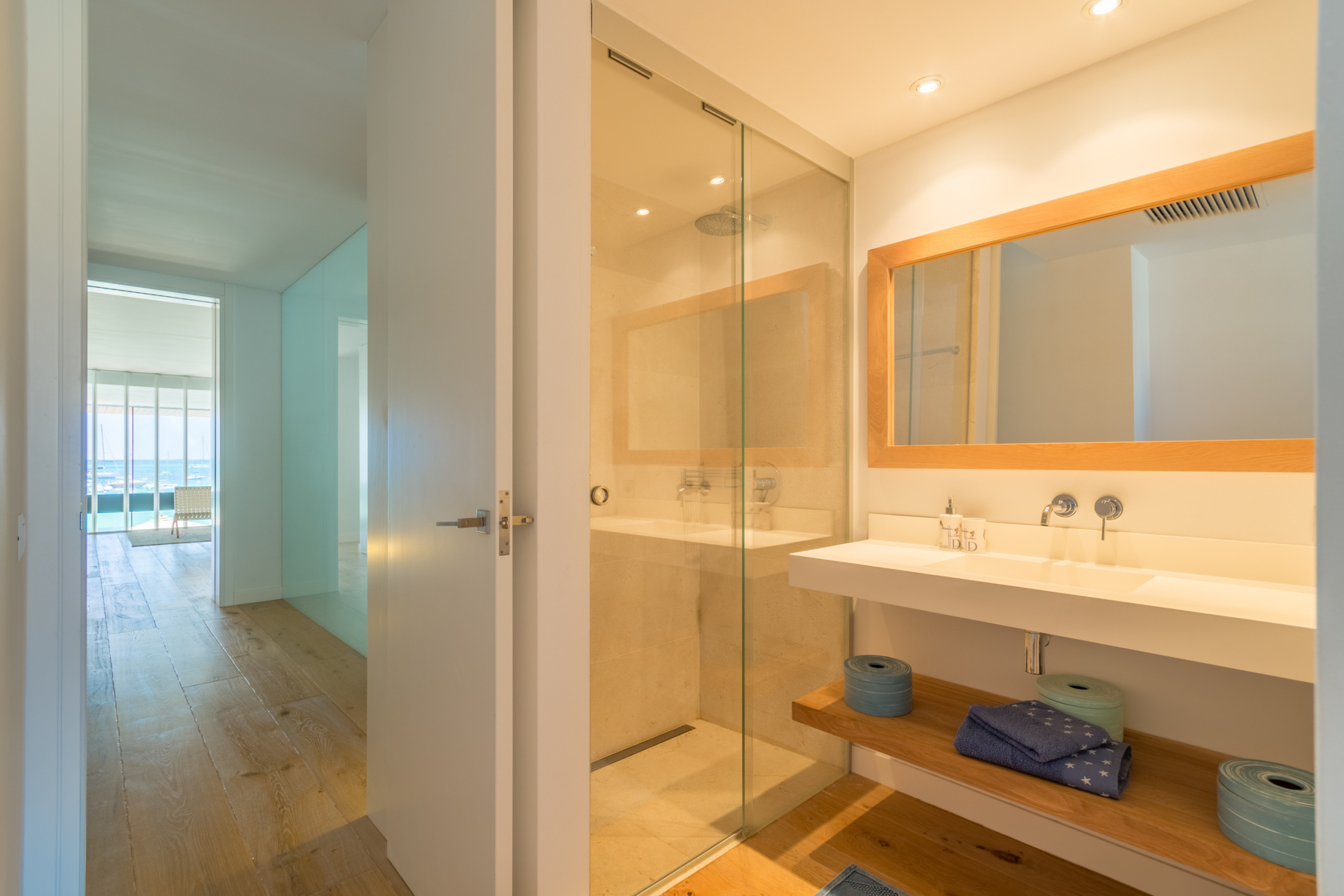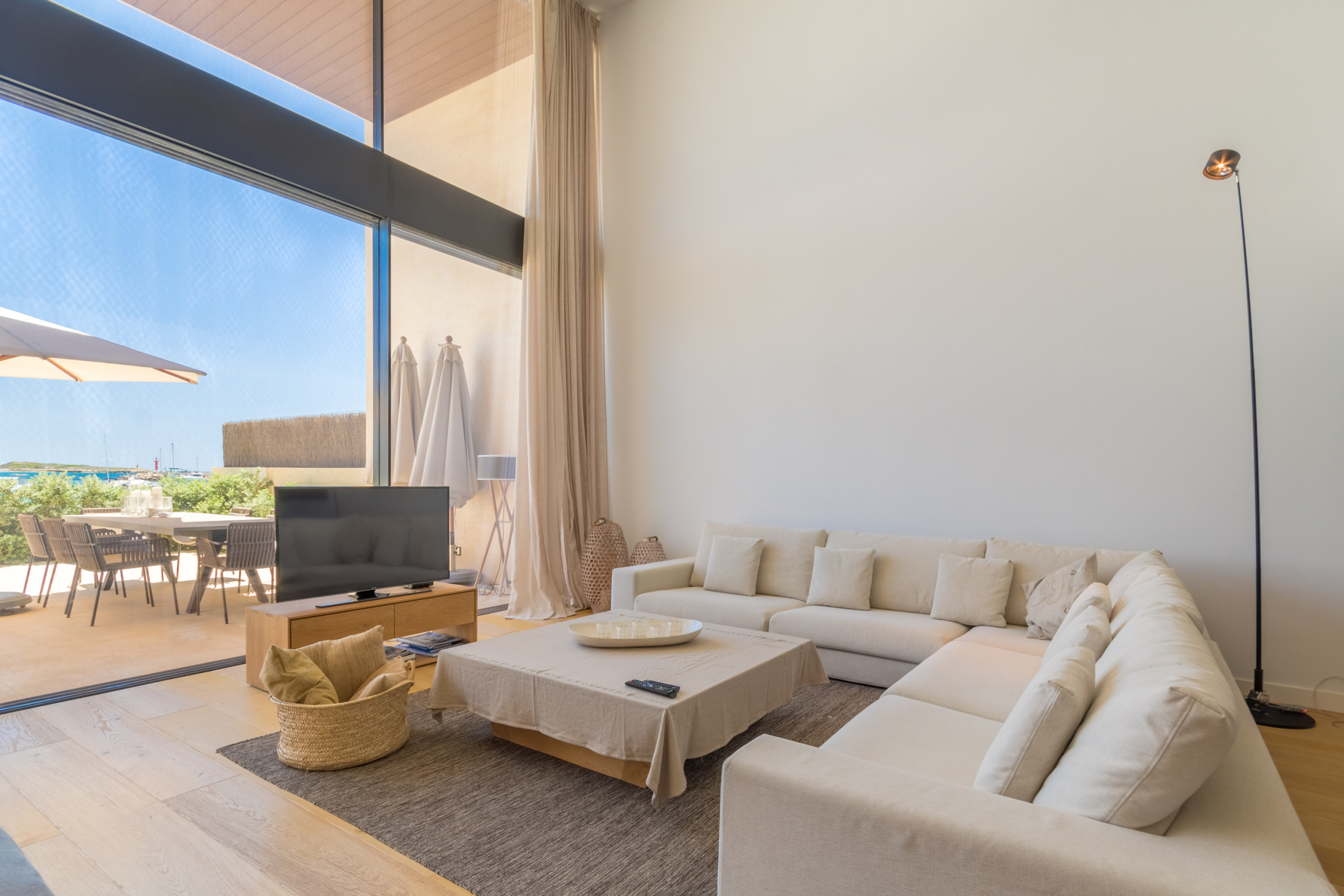 Nestled directly on the seafront in Colònia de Sant Jordi, the villa is within walking distance of supermarkets, boutiques, bars, and restaurants such as the renowned “Sal de Coco” and “Cassai Beach House”. Just 1.2 miles away you’ll find sandy beaches like Platja Es Port and Platja Es Dolç, while natural treasures such as Es Trenc and Caló des Moro are a short drive away. The area offers endless opportunities: seaside walks, water sports, visits to the Cabrera National Park, and charming nearby villages — all with Palma less than an hour away.