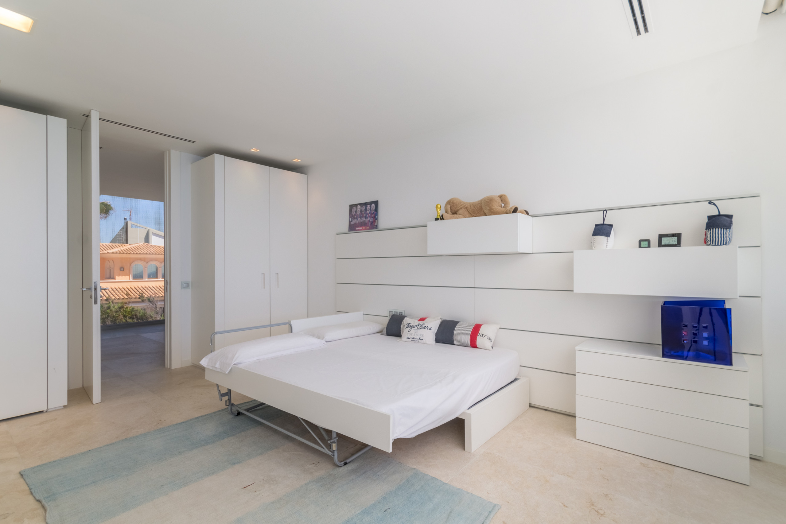 Outdoors, the private 12x4m infinity pool merges seamlessly with the horizon, complemented by a furnished sun terrace, barbecue area and chill-out lounges overlooking the turquoise sea. A daily cleaning service from Monday to Saturday (6 hours) keeps the villa spotless, so you can focus on enjoying your holiday. Just 800 metres away are sandy beaches such as Cala Blava and Arenal. Sports lovers will appreciate the local tennis and squash club, as well as golf courses Son Antem and Maioris just five minutes’ drive away. The 25 km coastal promenade towards Palma is ideal for walking, running or cycling by the sea.