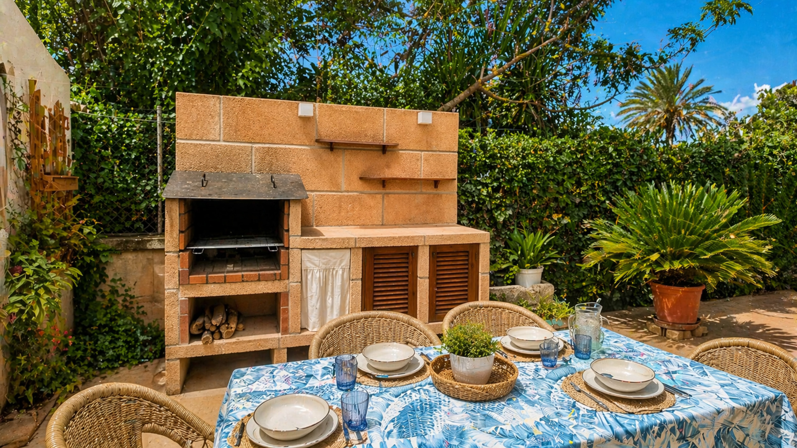The beautiful garden features well-kept green areas, a spacious porch, and a barbecue where you can enjoy pleasant barbecues. The pool is the ideal place to relax and enjoy the Mallorca sun. The property ensures privacy and a serene atmosphere.