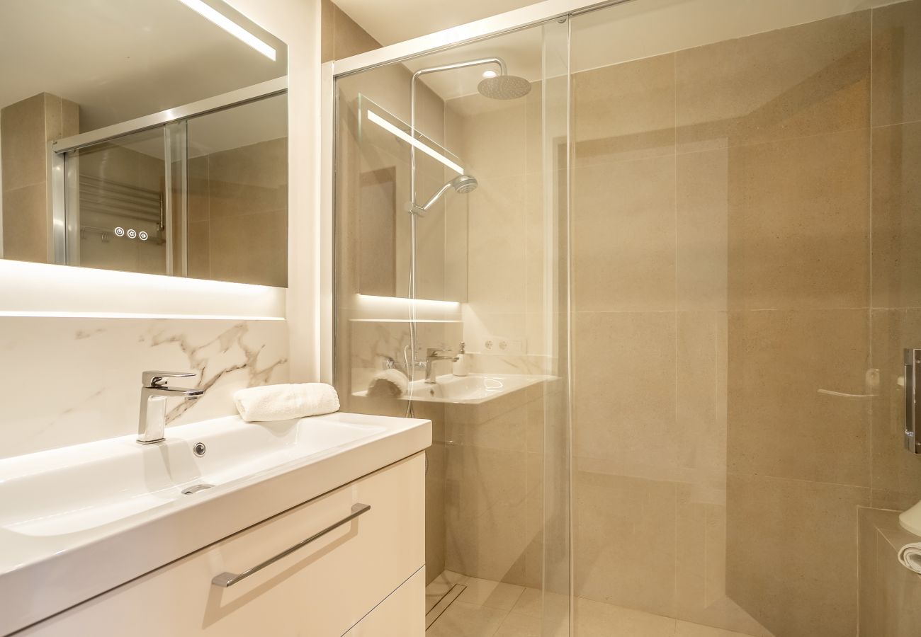 The kitchen, independent and fully equipped, includes a dishwasher, microwave and everything necessary to prepare your favourite recipes. Additionally, it has direct access to the terrace, which makes it especially practical.