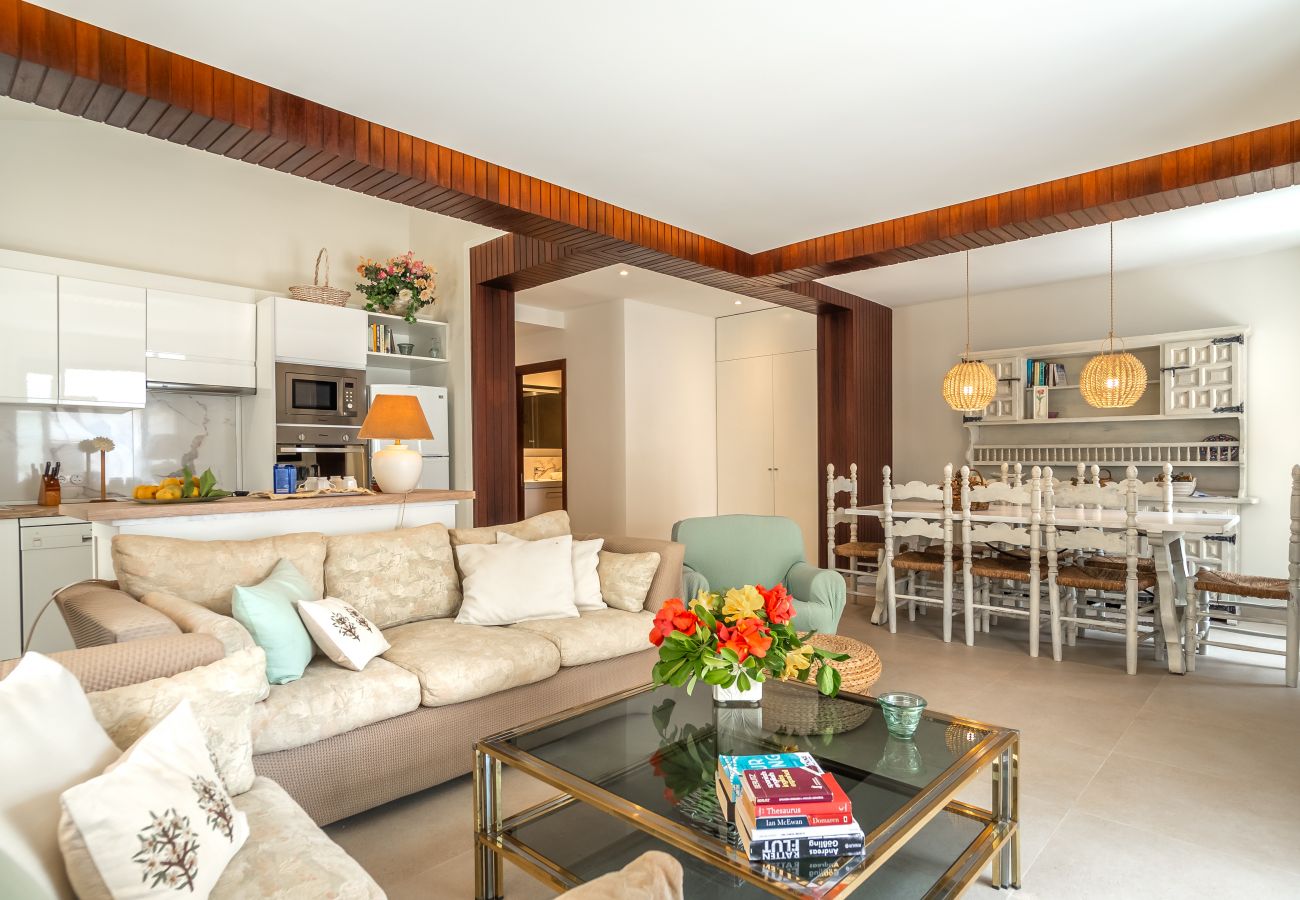 Bambú is a charming holiday home ideal for enjoying at any time of the year. Located just steps away from Pollença beach, it offers the perfect setting to stroll along the bay, admire its extensive sandy strip and the tranquil waters of the Mediterranean.
