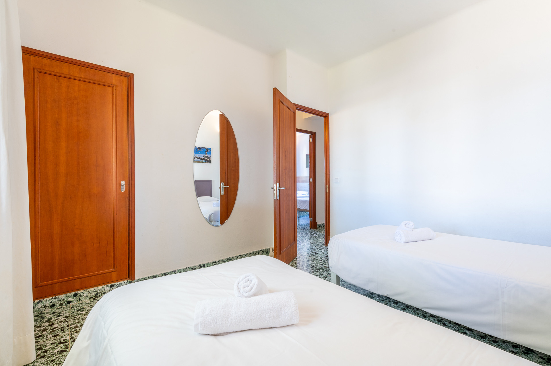 Two-floor villa for 8 people in Portocolom, with 4 bedrooms, 3 bathrooms and an elevated pool.