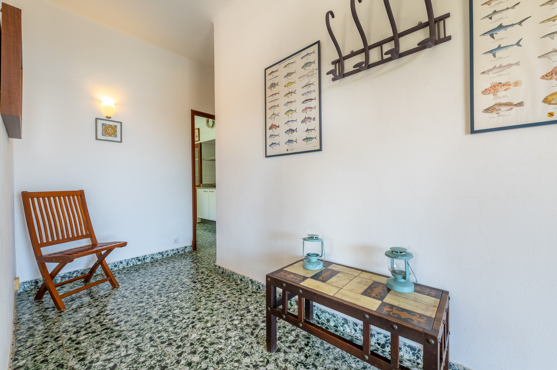 This two-floor villa is located in a very quiet area of Portocolom, the house has no parking for customers but it is easy to park in front of the house; there is an entrance decorated with bamboo canes next to the main door, which leads to the living room in which we find the staircase to the second floor, the living room has a large sofa, a dining table and television, next to this, there is a fully equipped kitchen with hob, oven, microwave, coffee machine, toaster and all the necessary kitchenware.