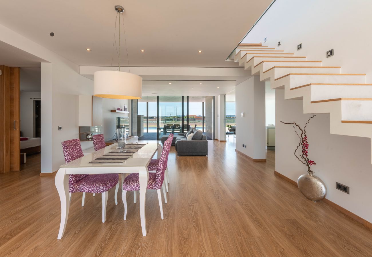 Inside, "Es Moli d'en Sion" dazzles with modern and high-quality decor, spread over 352 m² divided into 2 levels. The ground floor hosts a cozy living room, a fully equipped open-plan kitchen, and 2 double bedrooms with a shared bathroom. Upstairs, you'll find 3 more bedrooms, each with its own bathroom, offering maximum comfort and privacy.