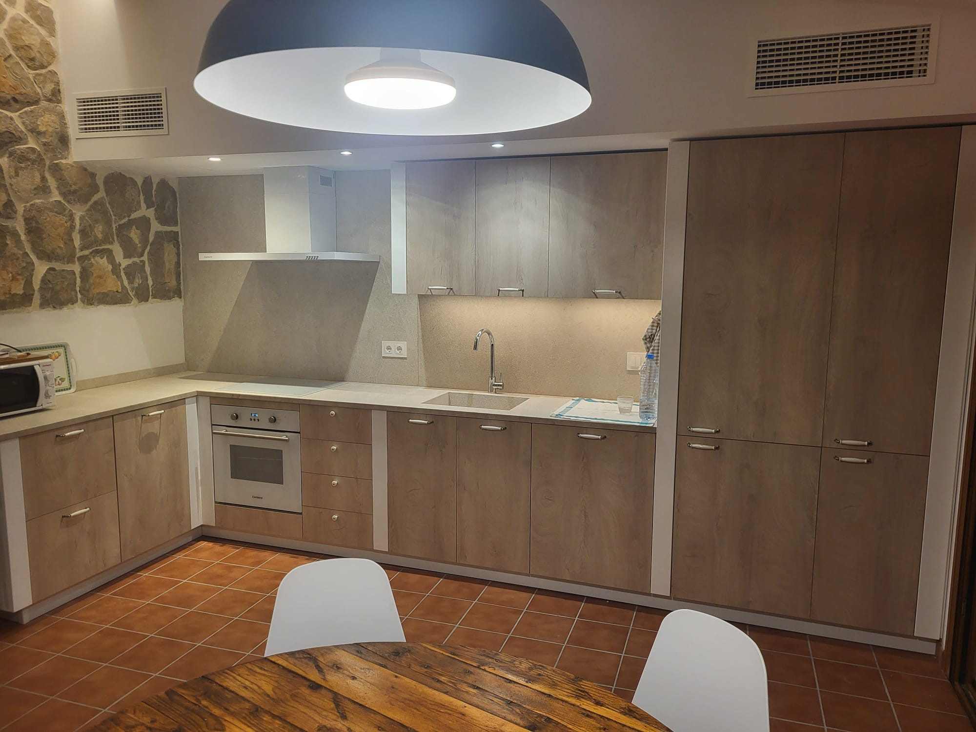 In the outdoor area, there is a large terrace with spectacular views, all the necessary furniture, a barbecue and a large 5x8 metre swimming pool so that they can cool off on hot summer days.