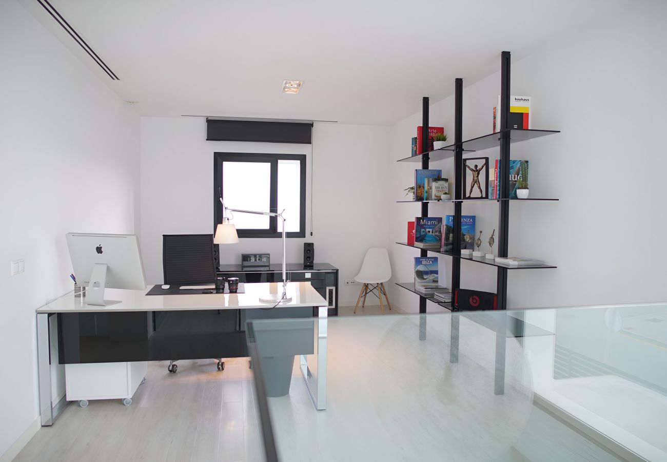 On the first floor there are 2 bedrooms and 2 additional bathrooms, one of them en suite. The double bed in the first bedroom has a solid and noble oak wood headboard. The second bedroom offers a spectacular sea view. It also has its own dressing area and an en suite bathroom with 2 hydromassage showers.