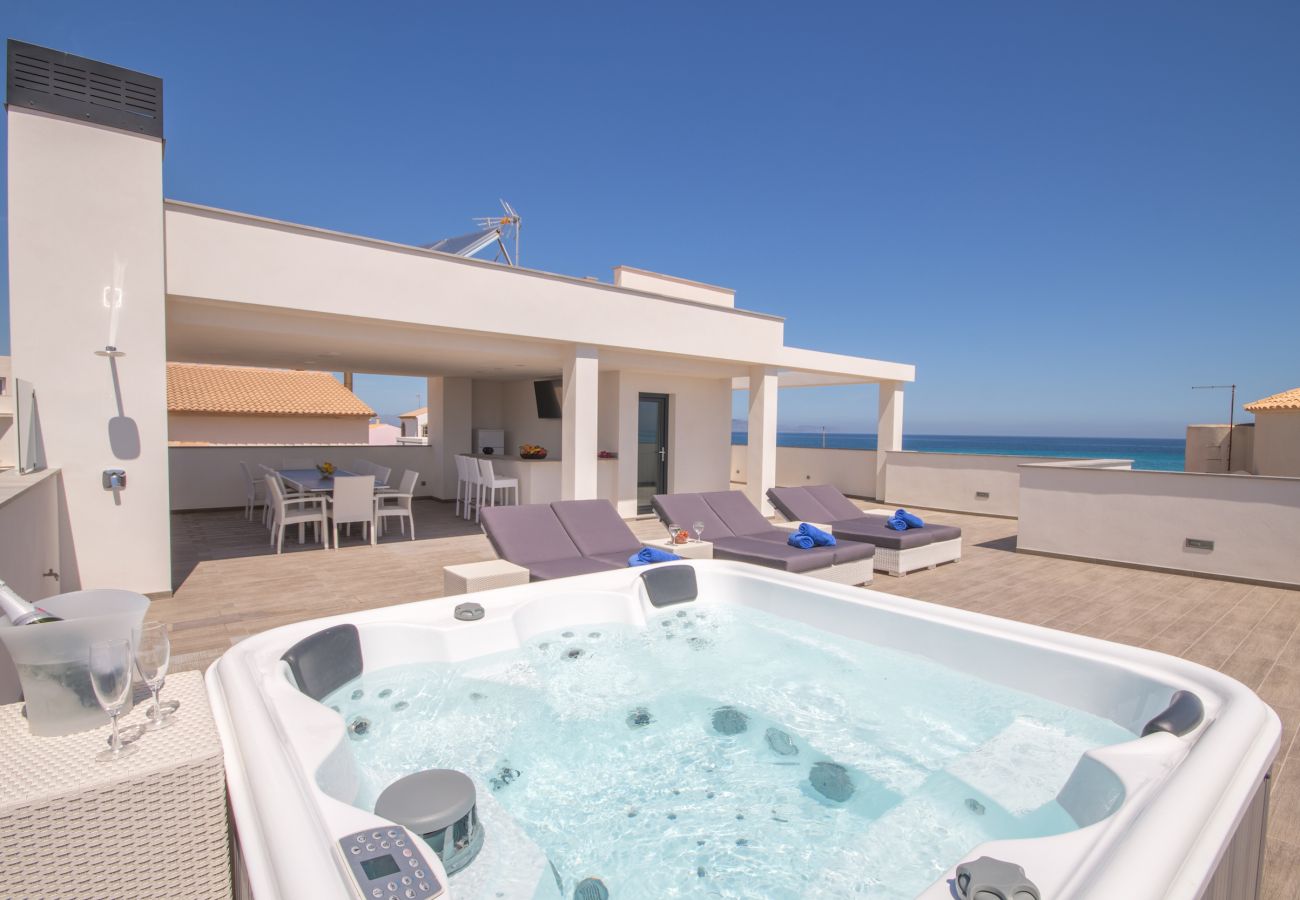 Enjoy breathtaking views of the bay from the rooftop terrace, equipped with a relaxing jacuzzi, dining area, barbecue, and sun loungers. Swim in the pool, exercise in the gym, and enjoy local cuisine in the fully equipped kitchen.